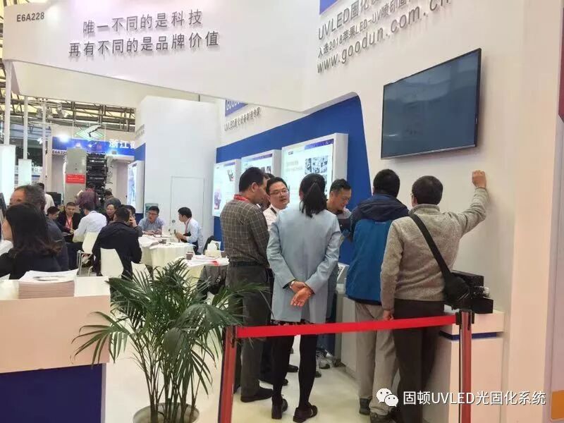 2018中国国际全印展于10月24-28日在上海新国际博览中心盛大举办,本届展会以“开启印刷智能时代”为主题,11万平米的展馆吸引了1000多家展商亮相,展品涵盖印前设备和软件、印刷设备、辅助设备、印刷耗材等方面。作为UV LED设备制造专家,江苏固立得精密光电有限公司(以下简称“固立得”或“公司”)在E6馆A228展位上展示了应用于印刷、喷绘领域的多种能量级别、多种尺寸光源、小型轻量控制柜等产品,旨在满足客户的不同需求,为客户带来更加合理、更加完善的固化解决方案。此次展会,固立得产品吸引了众多业内人士的交流、洽谈。